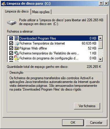 tempo o programa de Limpeza do disco irá localizar os ficheiros para limpeza: