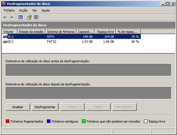 janela seleccionamos o disco que pretendemos desfragmentar (tipicamente o